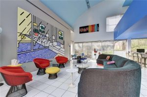 News that the Abrams House in Pittsburgh, designed by Venturi, Rauch and Scott Brown in 1979, has been sold and is to be demolished. Apparently, the new owner, who lives in the adjacent Giovannitti House (designed by Richard Meier) wants to enlarge his garden—the original owner of the Giovannitti House had sold the back part of his lot to the Abrams. Or maybe he just wanted to get rid of an eyesore? Venturi’s postmodern antics do not age particularly well. I was struck by the presence of a large (looks to be about 8 feet by 12 feet) painting by Roy Lichtenstein in the Abrams living room. Lichtenstein (1923-97), was the premier Pop artists of that epoch; a painting of his sold in 2011 for a record $43 million. I assume that the Pittsburgh Lichtenstein was not included in the house sale, which netted a paltry $1.1 million. Apparently Pop art is more in demand than Pop architecture.