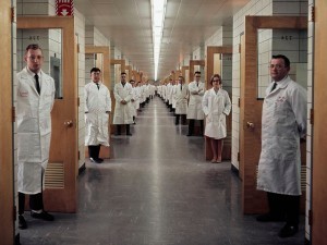 Jon Gertner writes an interesting article in the February 25 New York Times on the history of Bell Labs. It is illustrated by a 1966 photograph of researchers standing outside their offices in a lab building in Murray Hill, N.J. An endless, featureless, rather wide corridor with a strip of fluorescent lighting straight down the center of an acoustic tile ceiling. A model of dreary, unimaginative, bureaucratic design, right? Wrong. As Gertner writes, the building was specially designed by Mervin Kelly (who later became Bell Labs' chairman of the board) in 1941, the long corridor, which everyone in the organization had to walk along, was intended to create chance encounters. These were apparently effective in fostering creativity, as Kelly intended, and in those early years Bell Labs scientists were responsible for seminal inventions such as the transistor, the silicon solar cell, and the laser. There is an important lesson here for architects, who have often sought to find elaborate formal expression in the design of scientific work-place–one thinks of Kahn's Richards Medical Building at Penn, and Gehry's Stata Center at MIT–not always to great effect. Yet sometimes the most effective solution is the simplest. One of the best accounts of how architecture fails–and succeeds—remains Stewart Brand's How Buildings Learn: What Happens After They're Built (1995).