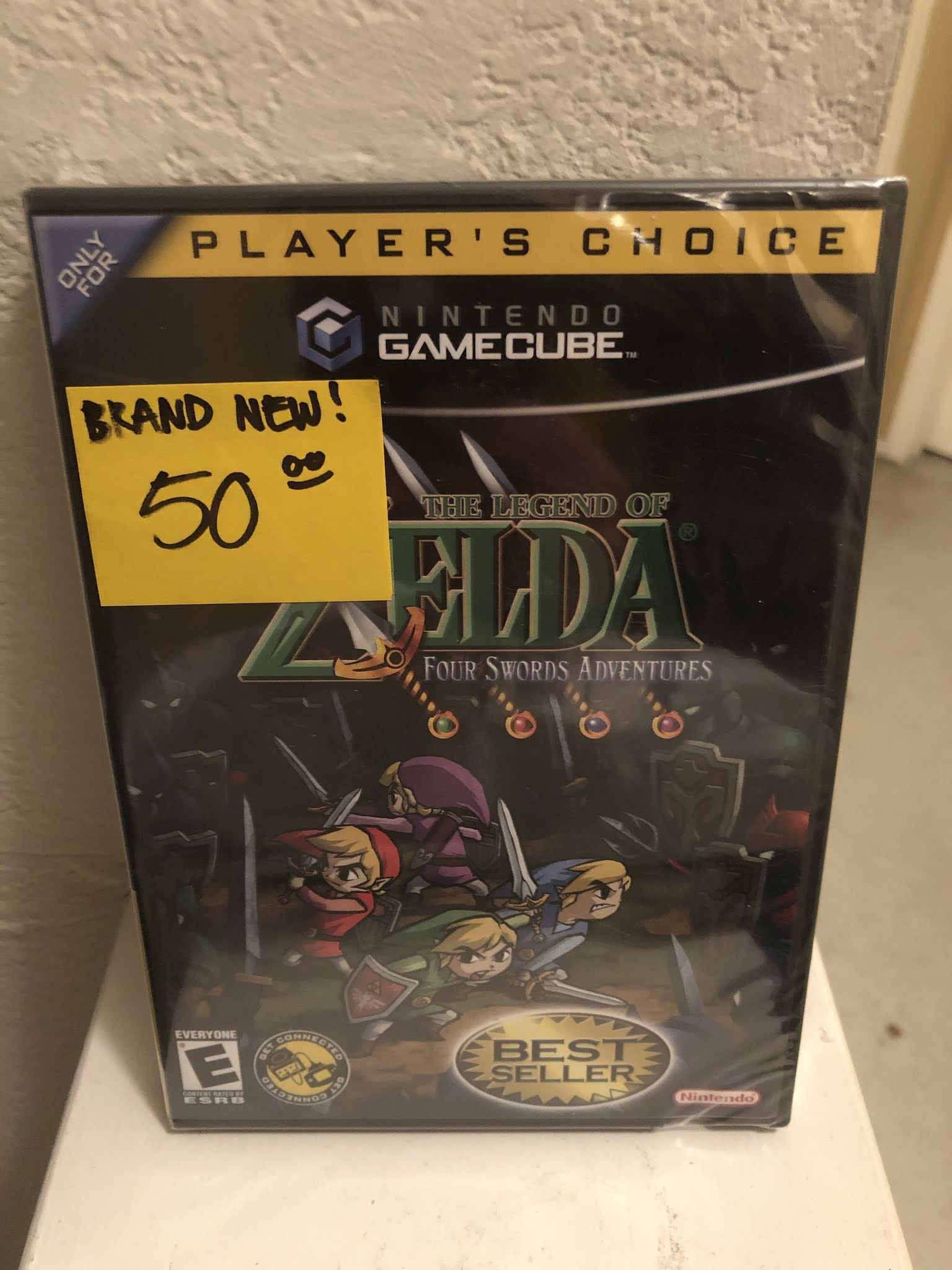 I traded for an excellent Super Nintendo game I needed for my collection called Mystical Ninja, and I paid just $50 for a copy of The Legend of Zelda: Four Swords Adventures for the Nintendo GameCube. I say “just $50” because it’s factory sealed, and if you’ve been paying close attention to Heritage Auction prices of late, you know that older factory sealed Nintendo games featuring desired properties like Zelda, Mario, and the like are going for big bucks these days. It’s a beautiful piece that I may just put on my shelf for awhile before deciding whether I should open it (horror!), sell it, or simply keep it on display. It is the “Player’s Choice” (later printing) edition of the game, which goes for around $150 to $200 on eBay. (The earlier printing without the “Player’s Choice” text at the top of the cover typically sells for $230 to $300.)