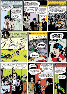 The debut Robin story is primitively and quickly told (obviously, you can’t simply take a child you don’t know home from the circus right on the spot, even if their parents get killed), and the art is crude compared to something like Hal Foster’s work on Prince Valiant, the adventure strip that debuted in newspapers the previous year. However, there’s a lot of energy on the pages, and the fast pacing makes for a fun read. Despite his youth and inexperience, Robin goes into action solo against some bad guys and gets the best of them. Like Batman, Robin has a utility belt and fights crime sans superpowers.