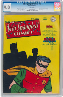 Robin’s unsophisticated debut tale took up just 12 pages of a comic book that was 68 pages in length, but that comic book is now worth the price of a small house. In 2009, a 9.4 CGC-graded example sold at auction for $107,550. Robin’s first time to go it alone was in Detective Comics #41 (July, 1940), and that issue is worth around $8,000 to $10,000 in near mint condition. A few years later, Robin appeared on the cover of Star Spangled Comics #65 (February, 1947), kickstarting a series of solo stories that lasted until that series concluded with issue #130. If you can find a pristine copy of Star Spangled Comics#65, expect to pay around $2,000 to $3,000.