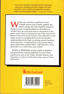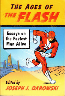 They say you shouldn’t judge a book by its cover, and that’s certainly the case with The Age of The Flash, a newish book by McFarland Publishers. Edited by Joseph J. Darowski, the slim (186 pages) volume features a generic image on the front that evokes the Silver Age version of the Fastest Man Alive, but does not portray his true uniform. I guess the lawyers at DC Comics are waiting to pounce on any unauthorized images of their mainline heroes. Or, perhaps McFarland is just being extra cautious, as they were with my Encyclopedia of KISS, which has a silhouette of Gene Simmons on the cover instead of an actual photo of him.Regardless, this is an interesting book that covers a wide variety of aspects of the Scarlet Speedster, from “The Birth of the Silver Age Flash” to “The Rise and Fall of Wally West” to “The Persistence of Vision and The New 52,” which was a 2011 revamping and relaunching of the DC Universe superhero line.