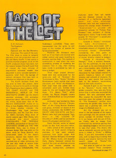 I found this article on Land of the Lost the other day while rummaging around in my office. What's cool about it is that it was written during the production of the show, not as a nostalgia piece years later. Amusingly, it appears alongside a story about Flesh Gordon, the soft core porn version of Flash Gordon.
