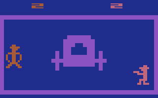 Some things, like going to amusement parks and sporting events, aren’t much fun by yourself. You can add playing Outlaw to that list. Played alone, Outlaw is an overly simplistic and boring game. Played with a friend, however, it is a kicking good time. You'll laugh a lot as you and your frenemy duck behind and break through the various obstacles, taking potshots at one another.Like most of the early Atari VCS games—Fun With Numbers and Maze Craze come immediately to mind—the graphics in Outlaw are barebones to say the least. With his cowboy hat and crouching shooting stance, the gunfighter is recognizable as such, but overall the sprites and color schemes are basic. When compared to other games of the day, however, Outlaw doesn't look too shabby.