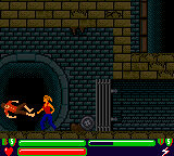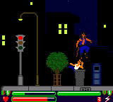 If you get knocked down, a vampire will jump on you and drink your blood. No matter which level you are playing, you will face only one vampire at a time. Arrows point your way to each successive bloodsucker. Throughout the game you can find soda cans that will enable you to do super punches and kicks. Paint cans and other items are scattered about for use in throwing at enemies.