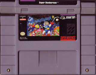 Memories: When my children were little and my wife and I would go visit her mother in Tyler, Texas during the late 1990s, the women and kids would go to the mall or wherever, and I would strike out on my own, haunting game stores, used book stores, thrift stores, and the like. One of my better finds during these outings was a boxed copy of Super Bomberman Party Pakwith the multi-tap and manual included. I paid $10 at a pawn shop. It is now worth around $200.