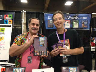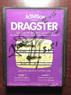 Personally, I've known Todd Rogers since I met him at the Classic Gaming Expo in Las Vegas more than a decade ago. He introduced himself and was very friendly. Years later, at the 2015 Classic Game Fest in Austin, he came up to my exhibitor booth to say hello. By sheer coincidence, I had a couple of copies of Dragster displayed on my table marked $5 each. Knowing a good photo-op when I see one, I grabbed the Dragster cartridges, asked Rogers to hold a copy of one of my books, and had my son, who was helping me at the booth, take a picture of us.