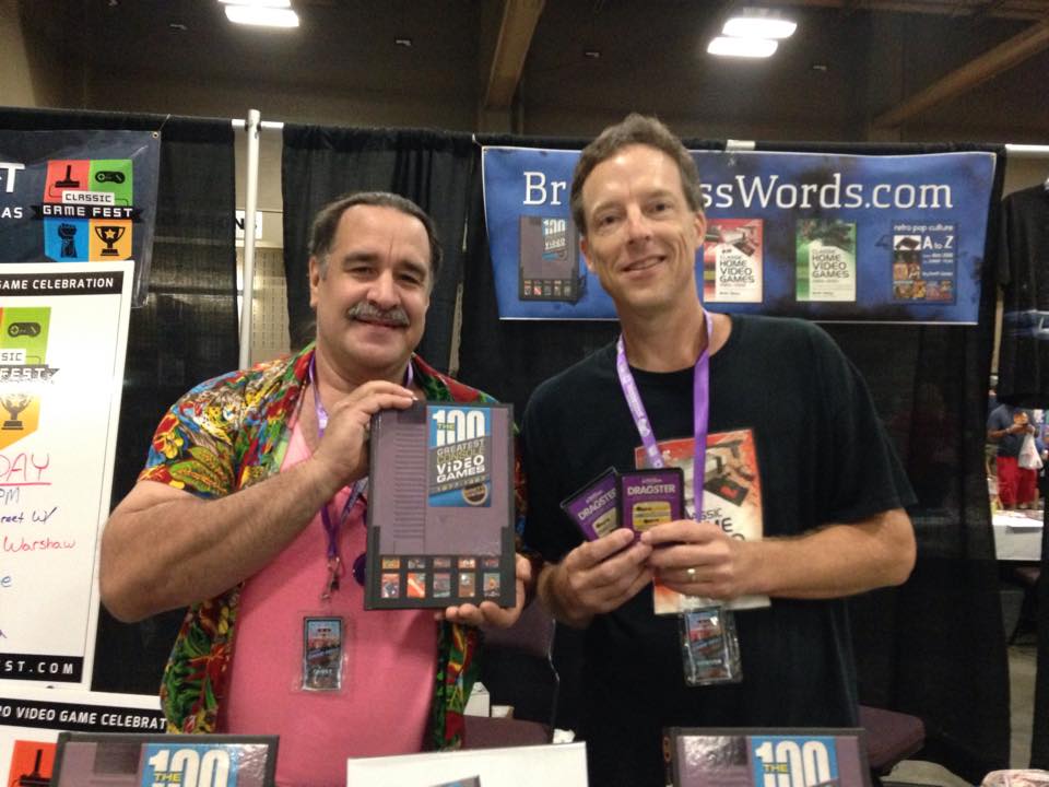 At the 2015 Classic Game Fest in Austin, we posed for a pic of me holding a couple of copies of Dragster I had for sale at my booth, and him with a copy of my “100 Greatest” book. As always, Todd was friendly, but then something strange happened at the convention a couple of hours later.