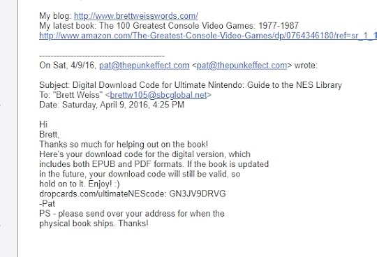 To provide a backstory on how things went south with Pat, when it was time for the thirdedition of his NES book to be published, he announced that there were going tobe 60 reviews completely rewritten. I remembered that I had done approximately thatamount and messaged him to inquire if he was taking out my reviews. He saw themessage but didn’t answer me, which was odd. I wish he had given me a heads-upbecause I was still mentioning that I had written reviews for his book in my bioand my resume—freelance writers like myself are constantly sending out pitchesto various editors, using their credentials to try to help get their articles seriouslyconsidered and then published.