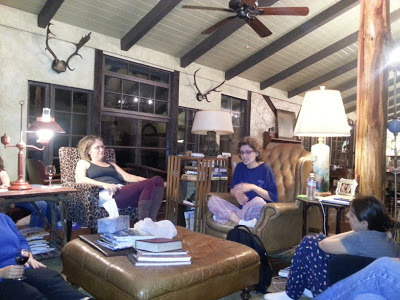 It was back to the Lodge o' Death for a writing retreat earlier this month. Sure, we all turn up with thoughts on what we're going to work on, but part of being an author is being flexible. Like getting last minute revision notes and working on that instead of the planned activity. Still, when it comes to writing, there is no where else I'd rather be than off in the woods with some my favorite writing gals, pouring out the words.