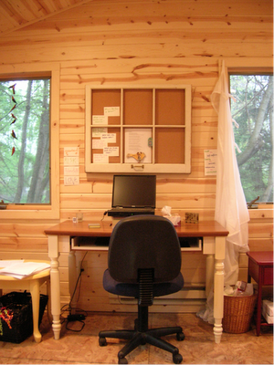 SO'C: I will close here with a picture of my writing space, which is deeply sacred and waiting for me right this minute! I have a deadline and the writing space doesn’t want me to go far. It’s a little writer’s shed I built in my backyard, a fulfillment of a lifetime dream, a small house of my own, and here it is.
