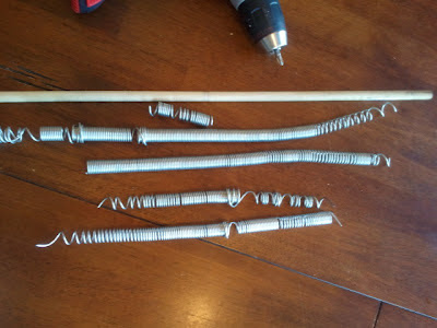 Step (1) - Wind the wire around the dowel using your drill. These are not my best coils. I've already snipped most and these are what's left.