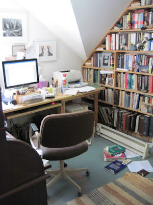 EB: Remember those “this is your brain on drugs” ads? This is my office during revision. Note the plywood floor and un-trimmed windows.