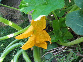 Here we have the blossom of a Delicata squash plant. If you haven't tried Delicata squash, you must--it tastes a bit like corn on the cob: sweet, fragrant, creamy, and perfect with sage, brown sugar, and butter.