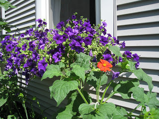 I don't know what the hell is going on in the next photo other than it's completely out of control. I have to lift this shit up with a heavy-duty stick so my husband can mow the 0.5 inches of lawn you see...when he gets to this section he calls, "Stick girl!" and I come running. I think next year I'm ripping up the lawn and replacing it with a creeping groundcover. I retire the stick and the jungle wins.