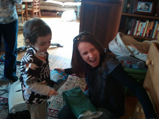We arrive to babysit. Corbeau, in a benevolent mood, grants us an encore performance of a show recently given with his Montessori classmates at school: "Kumbaya we are working, kumbaya we are peaceful, kumbaya we are reading, kumbaya we are loving…"