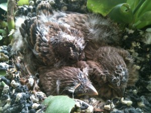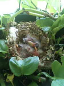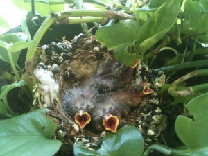6. A family of finches has recently taken residence in a potted plant hanging above my front porch. Okay, maybe that’s not really a random fact about me, but I’m running out of ideas here. If you’ve been following me on Twitter, Facebook or Google Plus, you may have seen me post some pics and videos of a family of baby finches nestled in a little nest built within the confines of a potted plant hanging from my front porch. Here are a few photos of the little velociraptors. Click on the images to enlarge.