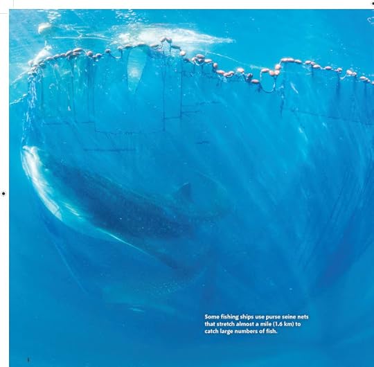 All at once, a big net blocks its way. The whale shark dives and turns, trying to swim under or around the net. But the giant fishing net is everywhere.