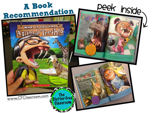 This photo is from the Clutter Free Classroom blog. Who reports: "It is currently the most popular book in our class library." SMILE!!!National Tooth Fair Day is coming up on February 28th. So I want to thank a few of the many teachers and librarians who have helped me share WHAT IF YOU HAD ANIMAL TEETH!? And, of course, the rest of the series including the newest book, WHAT IF YOU HAD ANIMAL EARS!?