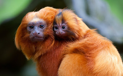Golden Lion Tamarin: This monkey's red hair makes it stand out. That may help it find other golden lion tamarins in its forest home. Scientists believe its hair is red at least partly because of the chemicals (carotenoids) in the fruit it eats.