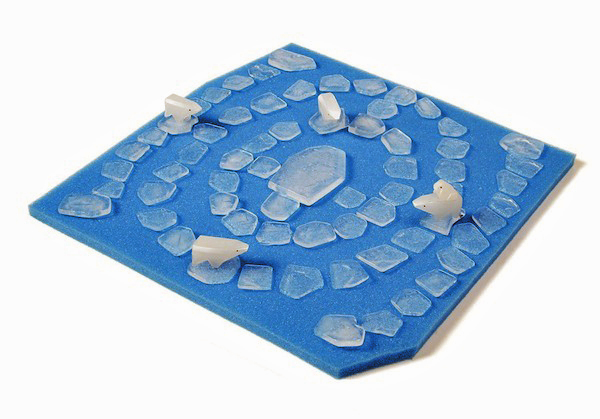 In this game developed by the German science magazine for children GEOlino, kids first create their own ice floes. The game board is a blue sponge with a mold they fill with water and freeze. Once frozen, the mold is removed and they're left with chunks of ice (ice floes) floating on a sponge sea. The sponge board soaks up the melting ice water as kids roll the dice and race to save the polar bears before all of the ice melts.