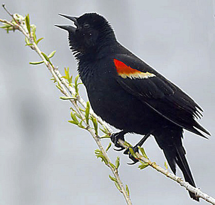 Male Red-winged blackbirds puff and sing to make females notice them.Listen To The BirdsOutdoors, listen to all the different bird voices. Try mimicking them and listen for them to call back to you. Once you're back indoors, visit Audubon's website to play the "Guess Who's Squawkin'!" game. It's a great way to discover the sounds some familiar North American birds make.