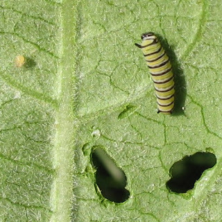 The female lays her eggs on the leaves of milkweed plants. Caterpillars hatch out in about four days.