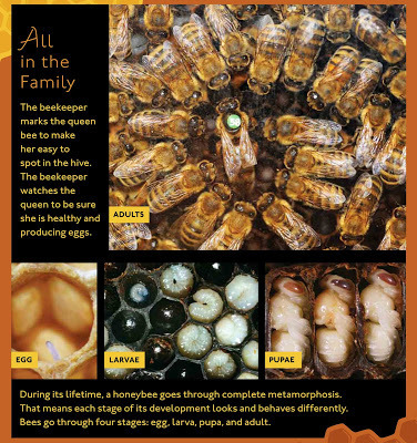 Dig into books and search online to learn more about the lifecycle of a honeybee queen. Write a short story about one honeybee queen.