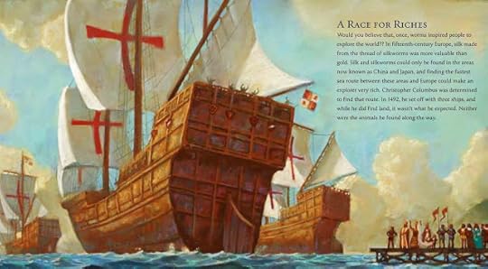 An Italian chap named Christopher Columbus claims he's figured out a sea route to the faraway lands that produce spices and silk. It's an exciting idea because trekking overland to those places is expensive and dangerous.