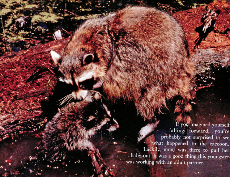 Did remembering your past experience let you guess the young raccoon lost its balance?