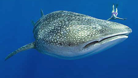Adult Whale Sharks, like this one, can be 45 feet (about 14 meters) long.Start by looking at the photos and reading the text. For even more clues, check out the map on page 30.