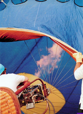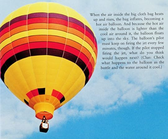 When the air inside the big cloth bag heats up and rises, the bag inflates. Now it's a hot air balloon Because the hot air inside the balloon is lighter than the cool air around it, the balloon floats up into the sky. The balloon's pilot must keep on firing the jet every few minutes, though.