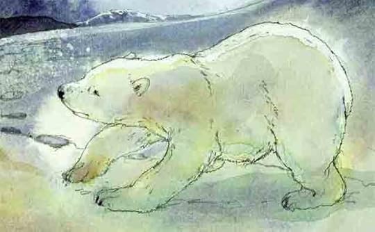 The orphaned cub left the spit and Nikita searched for it each day as he studied the polar bears. He watched her bravely fend off attacks from adult bears and steal a few bites of dried walrus skin. One day, she managed to get a dead bird all for herself. Seeing her fight to stay alive, Nikita nicknamed the cub Tuff. Watching Tuff became his favorite past time. Then one day Tuff surprised him by coming to the cabin where he lived on the island. His rule was to only watch the animals, but when he caught Tuff peering longingly into the window of the storage room where he kept his supply of reindeer meat his heart melted.