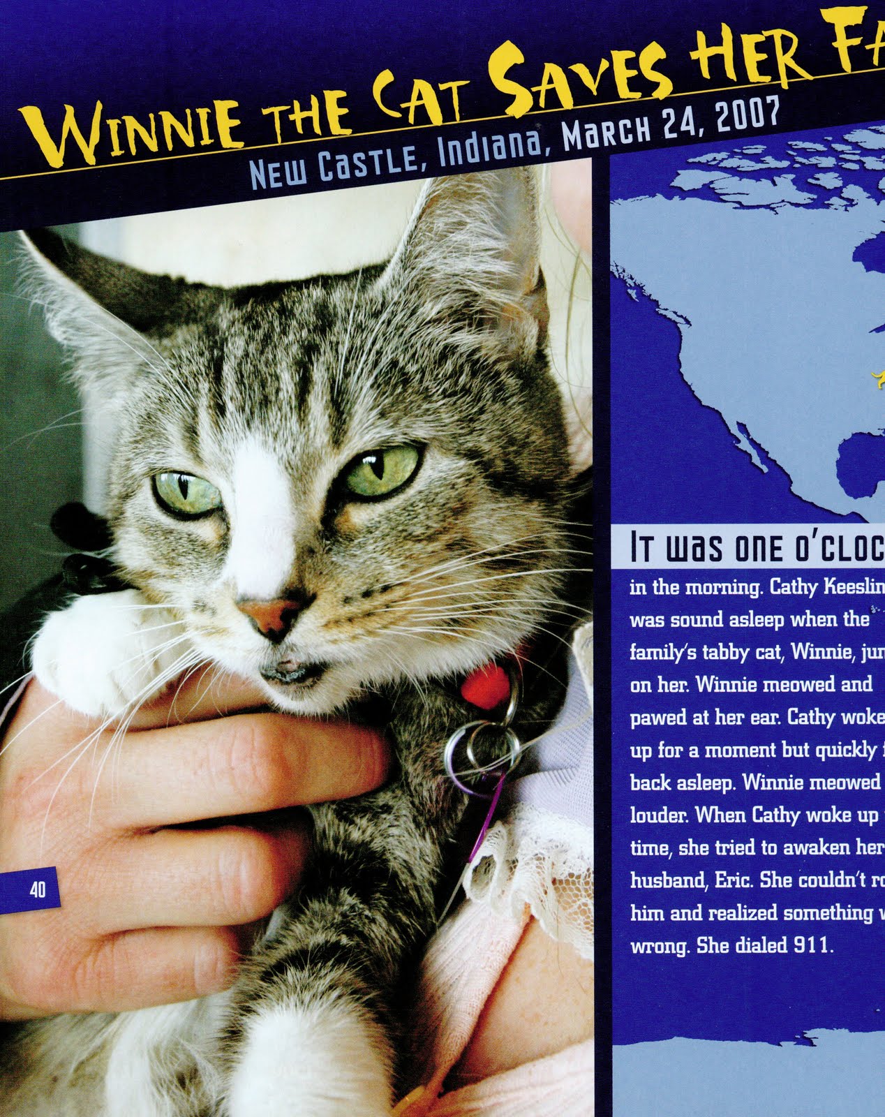 A docudrama book may tell a single real-life story. Mine usually share a number of stories that all have a common theme. For example, in my book ANIMAL HEROES: TRUE RESCUE STORIES (Millbrook/Lerner, 2009). There are nine short stories, each telling the story of one animal that helped people survive a life-threatening situation, like how Winnie the cat saved her family.