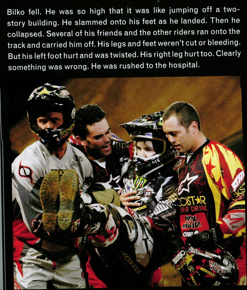 The people you interview are the first sources to check for photos. For example, when I was writing POWERFUL MEDICINE: SHATTERED BONES: True Survival Stories (Lerner, 2011), Blake "Bilko" Williams supplied photos to help tell his story. While hanging suspended from the handlebars of his motorcycle during a backflip, he lost his grip and fell, landing on his feet. He was so high that it was like jumping off a two-story building. The rest of the story is what happened to his leg and ankle bones and how doctors and the latest technology helped him recover.