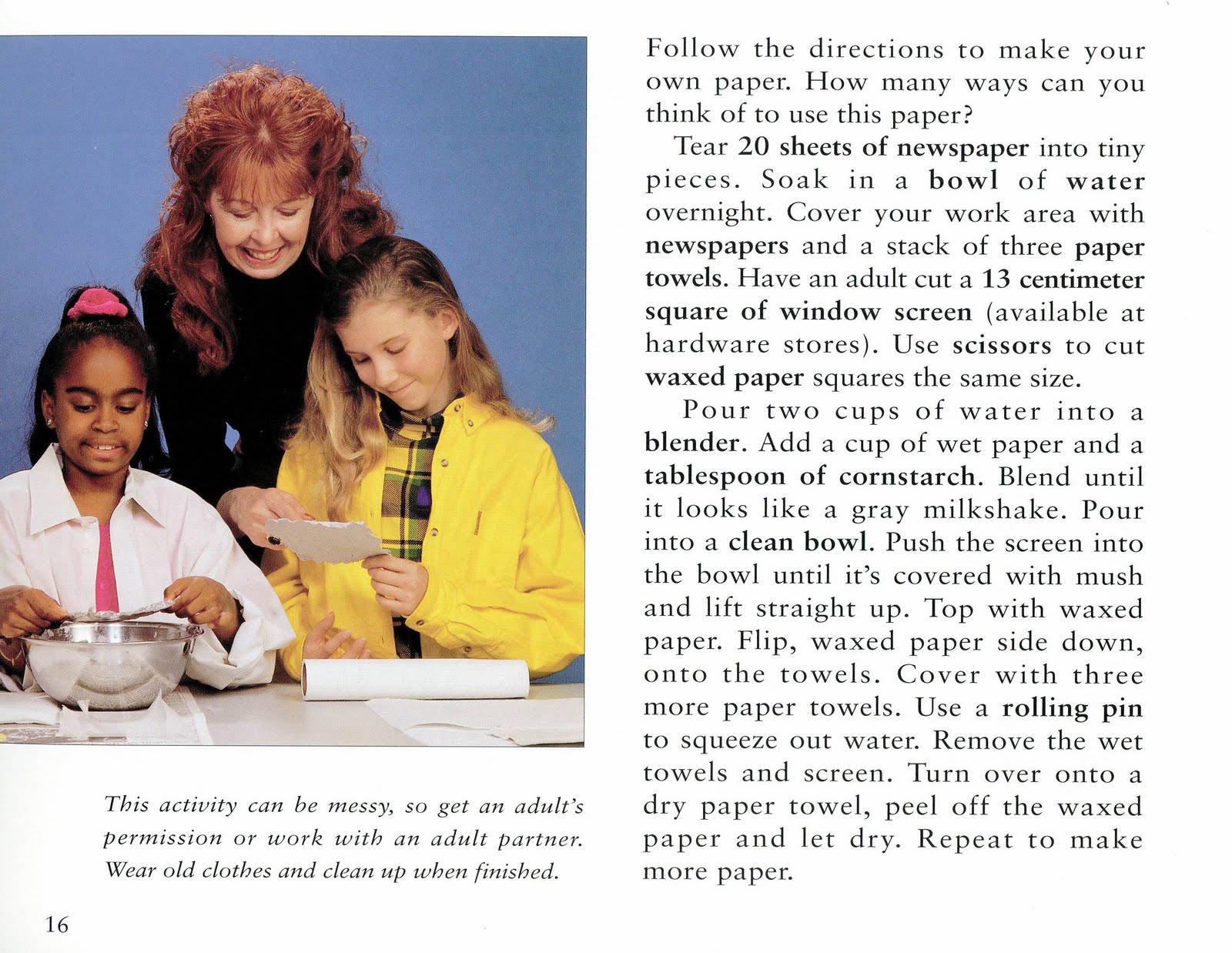 The following activity from What Happens Next?(Longstreet, 1995) will let children make paper and see how wasps change bits of wood into their building material.