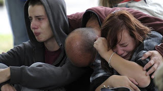 Others sat on the curb weeping. Still others, like my girlfriend and I hugged, and hurried toward the parking lot. We skirted bubbling gray mud spouting from cracks in the ground, but the mud was everywhere. The going was difficult. It was also hard to hear—hard to think—over the sounds of chaos and the shrill blaring of many sirens.