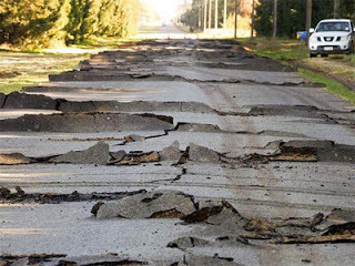 Two city buses lay crushed under heaps of bricks, power lines snapped, school buildings cracked, bridges split, and flat roads were transformed into roller coasters.