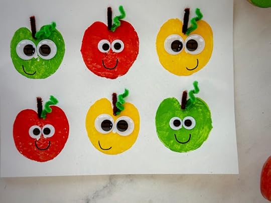 Apples make great print blocks. Cut a nice firm apple in half. Use a sturdy plastic knife or popsicle stick to cut away parts of flesh. Pour tempera or finger paint on a sturdy paper plate. Touch the cut apple to this to coat. Then press firmly on paper. Repeat to "stamp" your design all over the paper. If you want more than one color, wash off the apple and pat dry with a paper towel. Then keep on stamping with a new color of paint.September 15, 2023