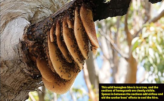 Honey bees leave the hive, gulp in a stomach full of water (actually 2 because a bee has 2 stomachs), and back at the hive spit the water out to wet the walls. Then they beat their wings to fan the wet walls and cause evaporation that cools their home.