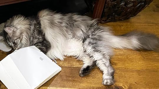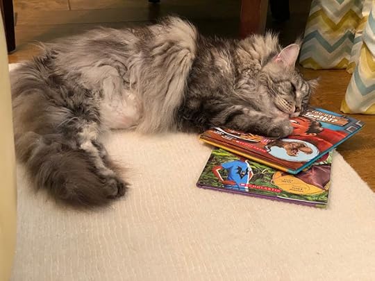 Beau guessed right! His mystery bag held Kitty Treats. Now, he's enjoying a book and a nap.