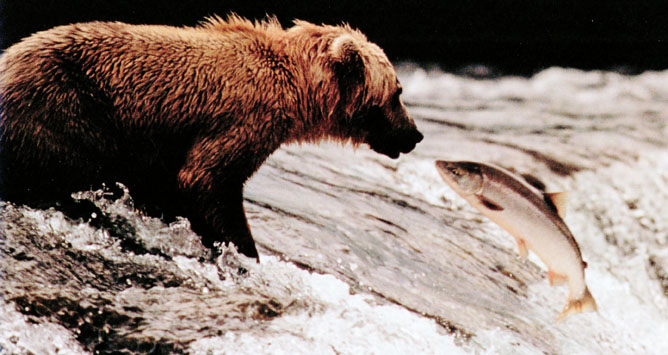 1. What will the bear need to do to catch the fish?2. What will the fish need to do to escape?3. Which is likely to be faster--BEAR? FISH?
