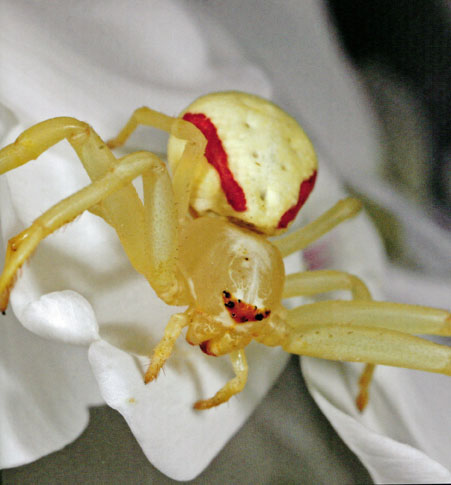 On the eighth day of Christmas, my true love gave to me eight crab spiderslurking inside flowers.