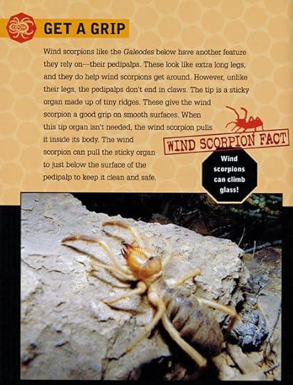 Almost at once, one of the wind scorpions ran straight up a nearly vertical rock. How did it keep from falling off? To find out, read Wind Scorpions: Killer Jaws pages 24 and 25.