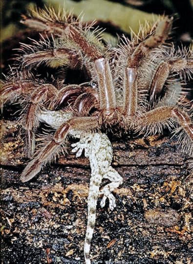 One goliath bird-eater tarantula was holding a gecko. As I watched it sank in its fangs and brought up digestive juices.