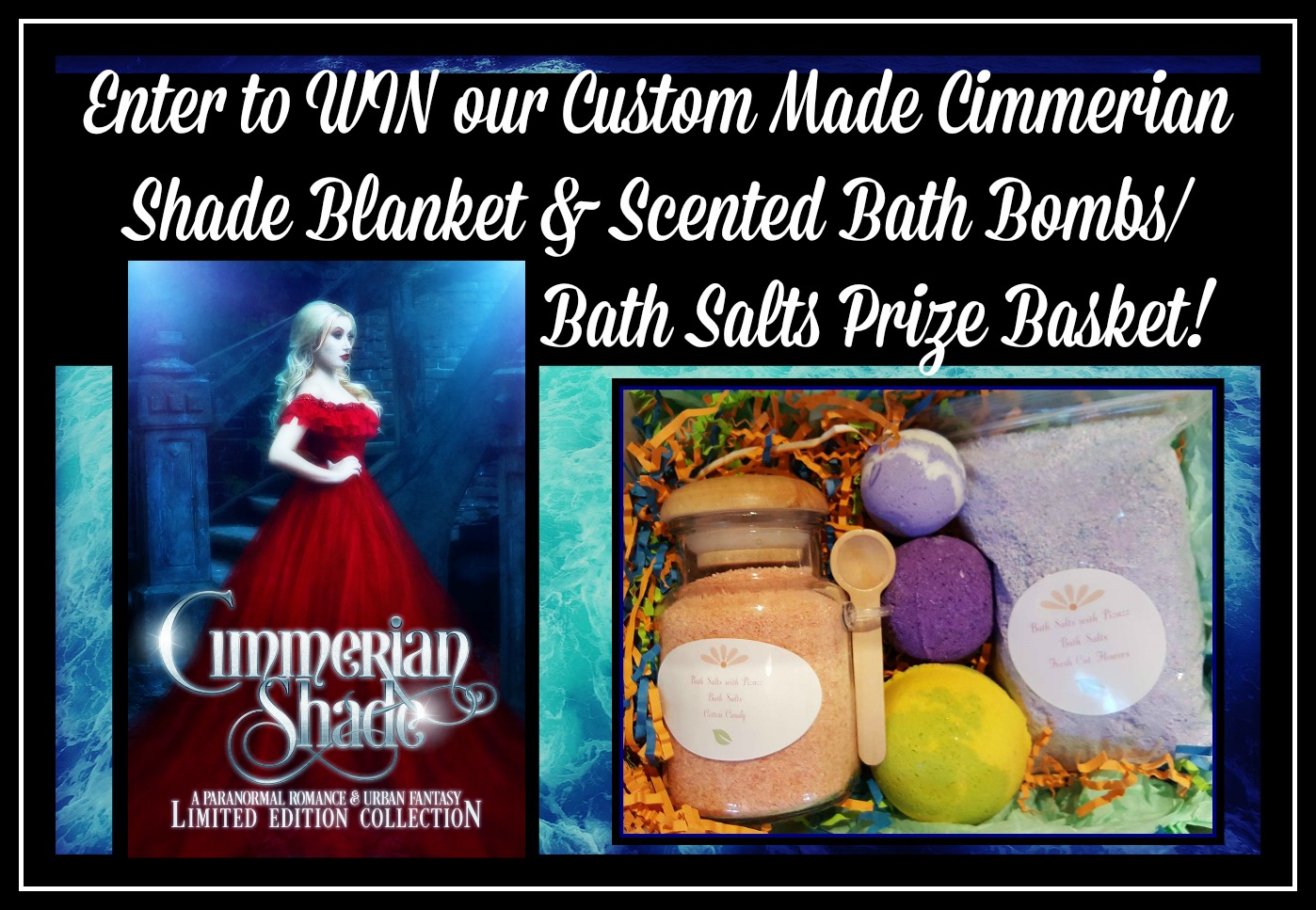 Enter to #WIN our Custom Made Cimmerian Shade Blanket & Scented Bath Bombs/Bath Salts Prize Basket!Long after the burn from the Cimmerian Shade Limited Edition Collection of stories has ebbed, one winner will have this machine washable, micro-fleece 50" x 60" (double sized) blanket to keep them warm and toasty on winter nights...or better yet, to share it and relive the stories all over again.