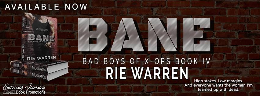 Title: BaneSeries: Bad Boys of X-Ops Book IVAuthor: Rie WarrenGenre: Erotic romance, humor, thriller, suspense, military, action/adventureRelease Date: July 27, 2016