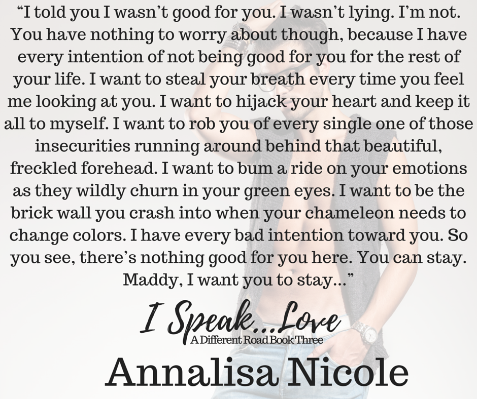 I Speak...Love (A Different Road, #3) by Annalisa Nicole @AnnalisaNicole4 ~ Cover Reveal #ASMSG #ContemporaryRomance