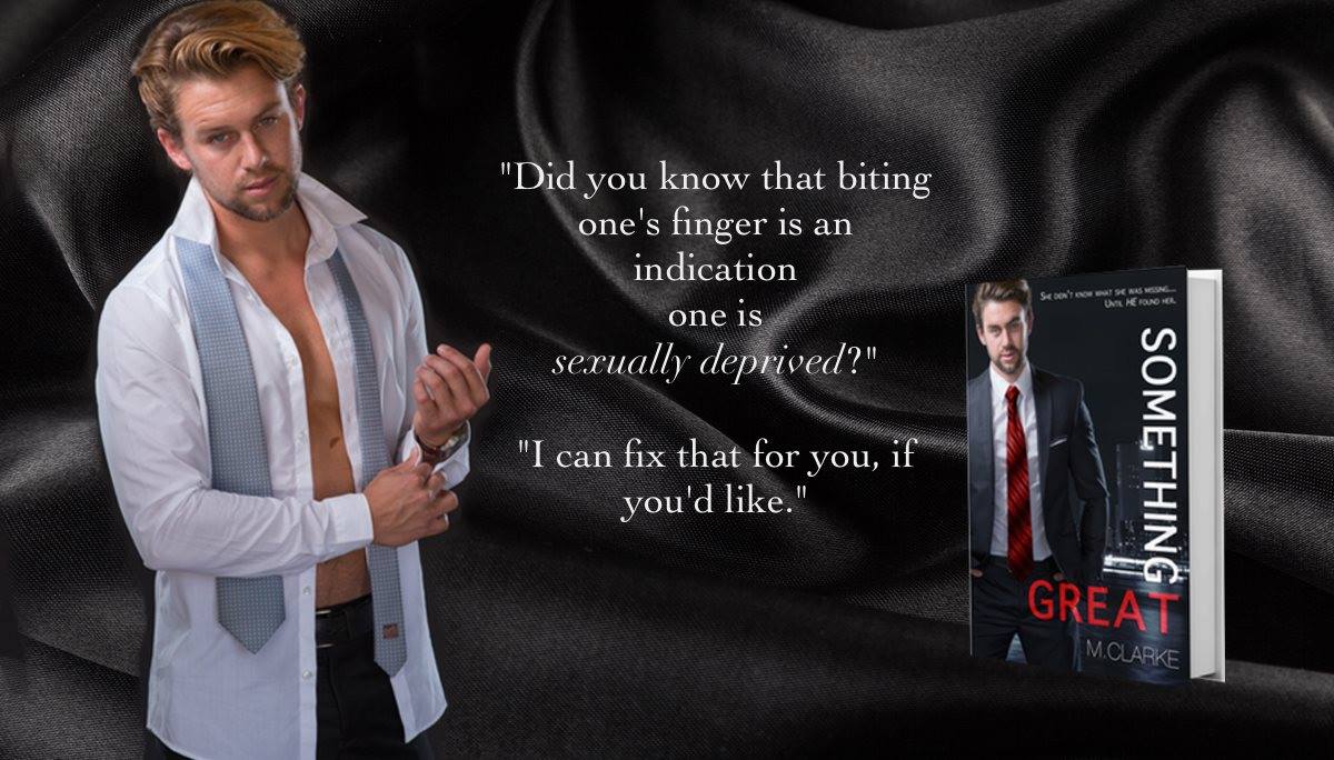 Title: Something Great SeriesAuthor: M ClarkeGenre: New AdultModel: Drew LeightyPhotographer: Michelle England DelavaraCover Designer: Laura Hildago