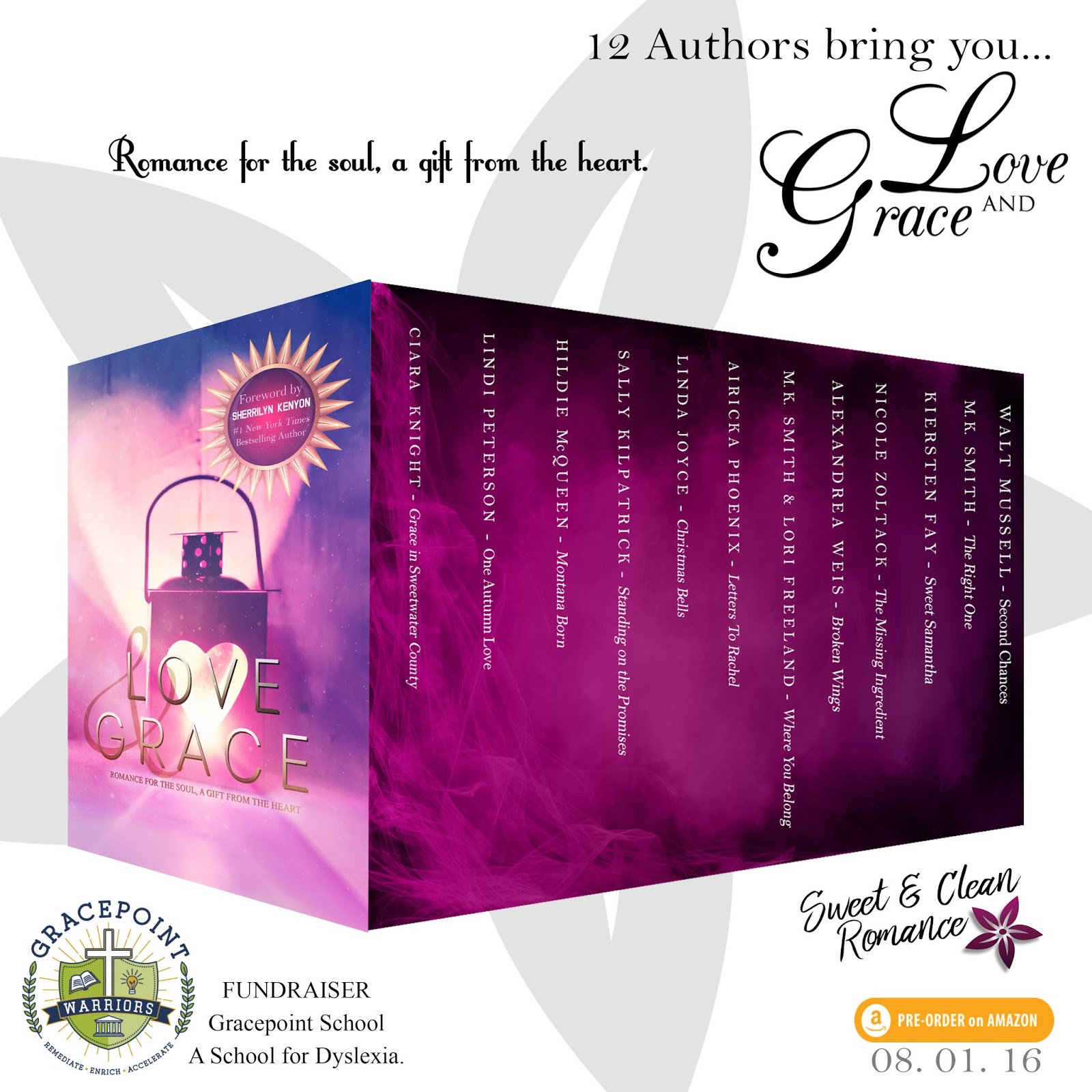 Blurb: This collection of sweet and inspirational novellas has an uplifting love story for everyone. These stories bring a touch of grace to romance, and a touch of romance to your heart.Our twelve authors have collaborated to bring together this collection. Each story relates to dyslexia in some way, and the full proceeds from all the stories benefit Gracepoint – A School for Dyslexia. This box set is our collective gift of love and support to you and the children Gracepoint serves.Can a town save a marriage? Will a high school reunion offer a second chance at love? Can a man with a secret and a woman afraid of being hurt learn to trust? Can a girl running from her past escape her heart? Will a woman trapped in the past discover the true importance of family? Can unexpected love become the best present ever?You’ll find hours of enjoyment as well as a satisfying ending to each story. No cliffhangers and no partial novels are offered here, just an escape into worlds of love, families, and grace.